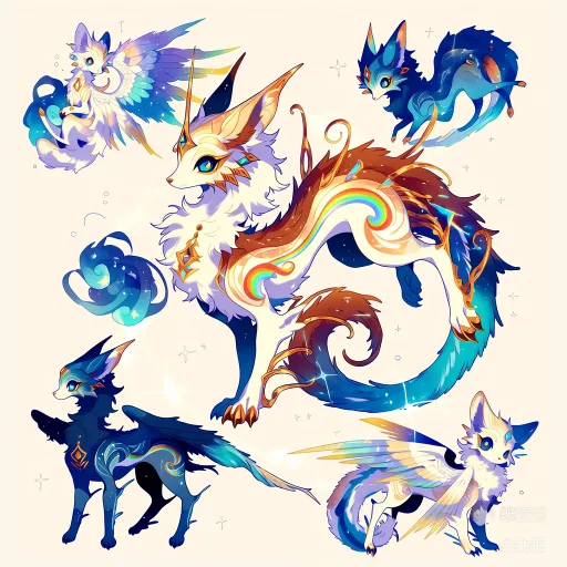 Midjourney Bot 更新时间:2026-03-23 00:17https://images.gogpt.vip/aigf/m_origin/20260321/2096602/t1u9t4r8qv4m1hbs.jpg https://images.gogpt.vip/aigf/m_origin/20260321/2096602/x23l2kqicf6nvjrg.jpg https://images.gogpt.vip/aigf/m_origin/20260322/2096602/pamhehms5p90m360.jpg https://images.gogpt.vip/aigf/m_origin/20260321/2096602/lxpzevf7p26t9f8a.png https://images.gogpt.vip/aigf/m_origin/20260321/2096602/55xht145f1zwjulq.jpg Generate gorgeous, exquisite, beautiful fantasy creature designs. The art style is cartoonish and anime-like, with beautiful colors and a sense of design, featuring rainbow elements. --ar 1:1 --stylize 100 --niji 7