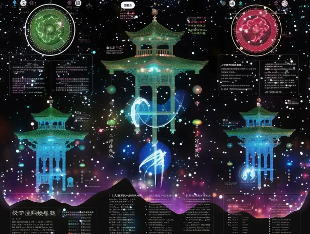 Midjourney Bot 更新时间:2026-03-23 00:22https://images.gogpt.vip/aigf/m_origin/20260323/2095800/172p4weqxwlg7k3b.jpg https://images.gogpt.vip/aigf/m_origin/20260323/2095800/cdww1nasl8h14pfo.jpg https://images.gogpt.vip/aigf/m_origin/20260323/2095800/vk4ynojq6xzknzom.jpg The theme model is a tea horse ancient road map with a small horse, and three hanging stilts in Yungui River are marked on the map and compared for their similarities and differences. The three hanging stilts are made of glowing blue and magenta semi transparent materials, suspended in the dark background of starry mountains, surrounded by glowing geometric holographic halos and data streams, with exquisite details and museum exhibition style lighting effects, integrating cyberpunk and traditional Chinese aesthetics, 3D rendering, Octane rendering, Unreal Engine 5 production, 8K resolution, ultra-high details. The complex data visualization poster layout of traditional Chinese stilt house architecture includes a dark starry sky background, neon illuminated charts and circular diagrams, a 3D stilt house model with illuminated center, highly refined UI/UX design elements, information chart layout, futuristic exhibition style, high contrast, vivid colors (cyan, magenta, green), conveying the simplicity of folk customs, national unity, love for peace, and common development. These elements must be accurate, detailed, and exquisite. The screen must be landscape oriented, with A3 size and some flattened information charts: 15, house section: 5, ultra fine, --ar 4:3 --v 6.0 --stylize 300 --iw 0.25 --sref https://images.gogpt.vip/aigf/m_origin/20260320/2095800/q8bob17xvwg02k7r.jpg --sw 597 --no 圆形