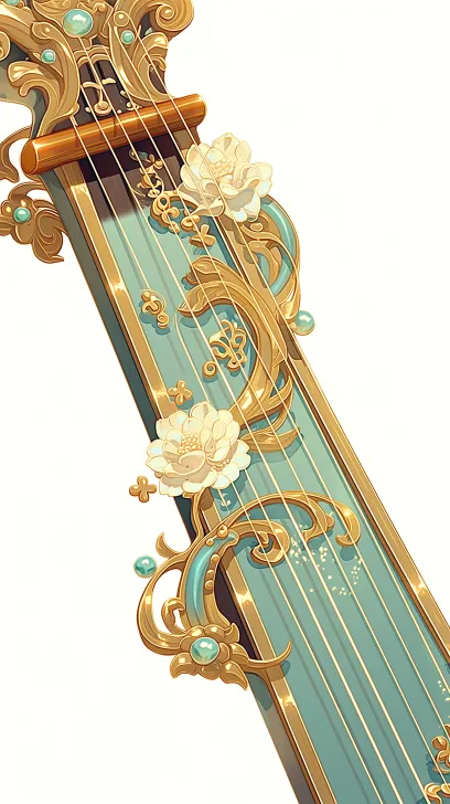 Midjourney Bot 更新时间:2026-03-20 00:16精致古风迷你古筝,浅青鎏金配色,琴弦清晰,琴身雕刻细腻花瓣花纹,木质温润质感,金属光泽细节,3D国漫卡通渲染,半写实,柔和光影,简洁背景,8K超精细,对称构图,无变形 --ar 9:16 --niji 7 --no 变形,模糊,恐怖