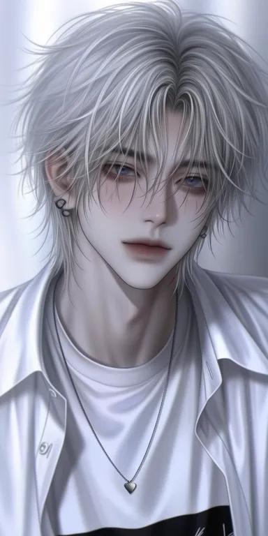 Midjourney Bot 更新时间:2026-03-21 00:05长相帅气的少年,五官精致,漂亮的眼睛,白色短发发丝跟跟分明,黑色眼睛微微上翘,气质优越,白衬衫,风衣披在肩膀上,插画半厚涂动漫风格,笔触,氛围感,肌理感,ar9:16,梦核,泪痣,露出上半身,俯视 --ar 1:2 --c 52 --stylize 476 --niji 7 --sref https://images.gogpt.vip/aigf/m_origin/20260320/1703502/ca319zm0cu929nt1.jpg --sw 317