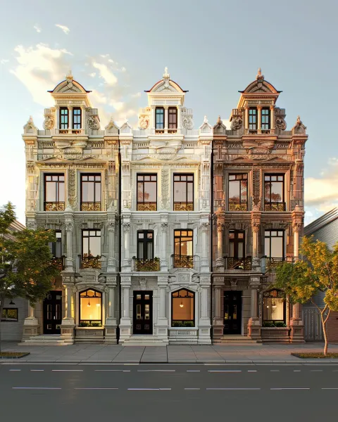 Midjourney Bot 更新时间:2026-03-21 00:02https://images.gogpt.vip/aigf/m_origin/20260320/2035378/crz2hl53lbzss2bl.png 根据基底图片给我生成建筑的其他四个立面图片,要求根据风格参考图类型的建筑立面形式。 --ar 4:5 --v 6.0 --style raw --weird 10 --stylize 280 --iw 0.25 --sref https://images.gogpt.vip/aigf/m_origin/20260320/2035378/rel40fs3r9ukbemy.jpg --sw 39