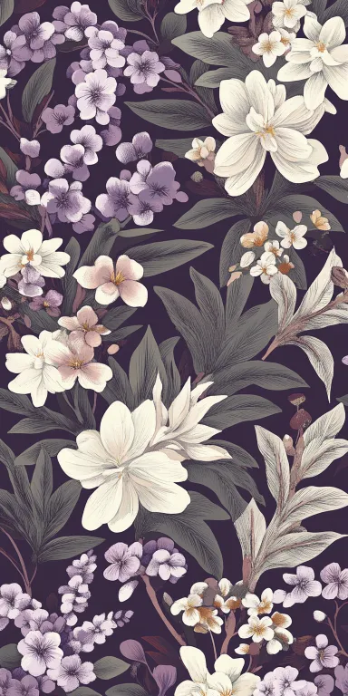 Midjourney Bot 更新时间:2026-03-21 00:04生成威廉莫里斯复古花纹的图案,图案以茉莉、晚香玉、雪松为主体,图案密集,色调为淡紫色 --ar 1:2 --v 6.1 --style raw --stylize 100