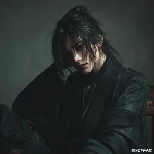 Midjourney Bot 更新时间:2026-03-20 00:0528岁俊俏帅哥,东方面孔,深邃,金属质感凌乱落肩短发,发丝透亮发光,线条清晰,深色瞳孔,长刘海,完美俊俏的脸,绝美狭长眼特写,脸部线条硬朗流畅,细腻刻画有光泽,黑色中式唐装,长袖,氛围灯光,高级CG,oc渲染,高级cg插画,手绘,清透,CG厚涂,肌肤感,近景低角度仰拍上半身视角看人物,冷峻,冷酷,夜晚中式书房背景,人物完美打光,明暗对比,半身,垂眸,轮廓光,慵懒的靠坐在沙发上,右手拿着红酒杯,宽肩细腰,浑身肌肉感,侧脸 --ar 1:1 --v 7 --stylize 100