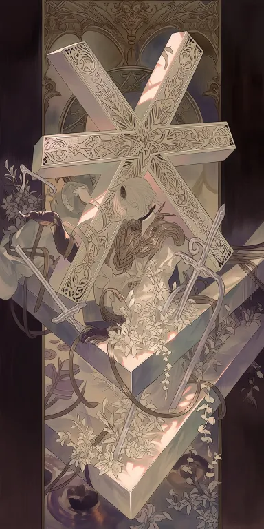 Midjourney Bot 更新时间:2026-03-20 00:05https://images.gogpt.vip/aigf/m_origin/20260310/140639/uz0o4duakmxmt1a7.jpg 商业插画渲染,二次元塔罗风格,神秘主义元素,中世纪花纹装饰,皇室元素,五个倾斜的巨型十字架堆叠在一起,上面捆绑着骨架,十字架和骨架长满藤曼鲜花 --ar 1:2 --stylize 112 --iw 0.3 --niji 7 --sref https://images.gogpt.vip/aigf/m_origin/20260220/140639/t73j9suxwfzhv3qk.png https://images.gogpt.vip/aigf/m_origin/20260220/140639/a7ou9sr36eidfrxe.png https://images.gogpt.vip/aigf/m_origin/20260220/140639/7k3f07puturs1vrr.png --sw 149
