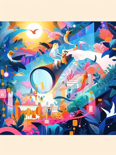 Midjourney Bot 更新时间:2026-03-20 00:06https://images.gogpt.vip/aigf/m_thumbnail/20260319/2094440/7scod9n86slprmr4.webp 海报插图,渐变背景,,放大镜看世界,飞鸟划过天空,穿梭时空,植物树丛茂密浅蓝绿色,丰富的饱和色彩,精致的细节,夸张的手法,构图紧凑元素衔接自然,平面插图,Victo Ngai风格,插画风海报,16K, --ar 3:4 --stylize 100 --iw 1.25 --niji 5