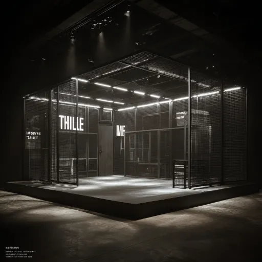 Midjourney Bot 更新时间:2026-03-20 00:08《Thrill Me》舞台剧舞台设计文字阐述(16:9标准舞台·可落地·强舞台感·暗黑悬疑向) 本次《Thrill Me》舞台设计严格遵循16:9标准宽屏舞台比例,以极简暗黑、心理博弈、罪案回溯为核心视觉逻辑,贴合剧目双男主对峙、回忆与现实交织、压抑紧绷的叙事气质,兼顾专业舞台可实行性、光影叙事性与沉浸式戏剧张力,全程无冗余布景,用空间与光影完成故事表达。 舞台整体采用单一场景模块化设计,适配小剧场与中剧场演出,主体为冷灰色调金属质感框架结构,占据16:9宽屏舞台的中心视觉区,左右两侧预留光影通道与演员调度动线。背景为可升降黑色哑光幕布,内嵌低饱和暗纹罪案档案肌理,不抢视觉焦点却暗藏故事感,幕布可配合剧情快速切换“监狱假释厅”与“1924年芝加哥罪案现场”双重时空,实现无换景流畅转场。 舞台中央设置可旋转升降铁制审讯桌与两把单人椅,作为双男主核心对峙支点,桌椅高度、角度可机械微调,强化权力关系与心理压迫感;桌面暗藏暗格与灯光触点,可在关键剧情节点亮起冷白审讯灯,呼应“契约、谋杀、背叛”的核心冲突。舞台地面做哑光黑色防滑处理,绘制隐形几何分割线,既满足演员精准走位,又通过线条切割营造疏离、破碎的心理空间。 光影设计为舞台核心表达手段,采用顶光、侧光、轮廓光三重定向布光,以冷白、深蓝、暗红三色为主:冷白光聚焦审讯现实,强化冰冷对峙感;深蓝光影包裹回忆段落,营造复古压抑的罪案氛围;暗红光束仅在谋杀、血契、背叛等高潮节点局部打出,制造危险与失控感。全程杜绝满铺强光,以明暗强烈对比制造舞台纵深感,16:9宽屏比例让光影横向铺开,压迫感包裹全场,让观众直接置身双男主的心理博弈场。 舞台两侧极简布置复古铁艺文件柜与半透明档案窗,内嵌微弱暖光,隐约透出旧报纸、指纹档案、眼镜道具(剧中关键证物),用细节锚定真实罪案背景,不破坏整体极简风格,却让故事感落地。所有布景均为轻量化可快速拆装结构,无大型吊装道具,完全符合舞台剧实地演出的调度、灯光、走位与安全实行标准,在有限空间里最大化放大戏剧冲突与暗黑舞台美学。 生成一个舞台设计效果图 ,要有故事感舞台感可实行性光影感,尺寸要求16:9 --ar 1:1 --v 7 --stylize 100