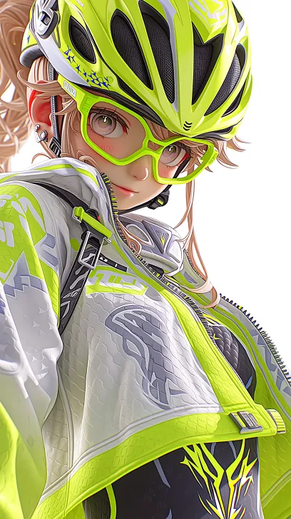 Midjourney Bot 更新时间:2026-03-20 00:093D C4D 风格,泡泡玛特潮玩 IP,2.5 头身比例,圆润包子脸搭配两团淡粉色腮红,超大圆形车轮瞳孔灵动可爱。头戴 oversize 亮黄 / 荧光绿儿童赛车头盔,表面满铺星星、火焰涂鸦贴纸,造型笨拙充满童趣。身穿宽松连体儿童赛车服,白底色搭配荧光撞色线条,胸口点缀精致闪电刺绣标志,整体风格软萌治愈,潮玩质感拉满 3D模型,萌动漫风格,FLCL, --ar 9:16 --c 65 --weird 1416 --stylize 738 --niji 7