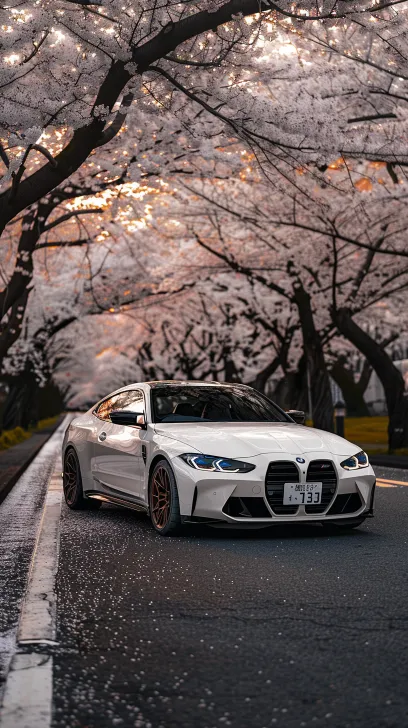 Midjourney Bot 更新时间:2026-03-19 11:202023宝马M4,白色,停在樱花飘零的道路上,天气合适 --ar 9:16 --v 6.0 --stylize 100