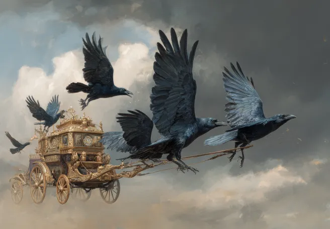 Midjourney Bot 更新时间:2026-03-19 11:21乌鸦群飞舞 蒸汽波时尚, --ar 390:270 --v 7 --stylize 100