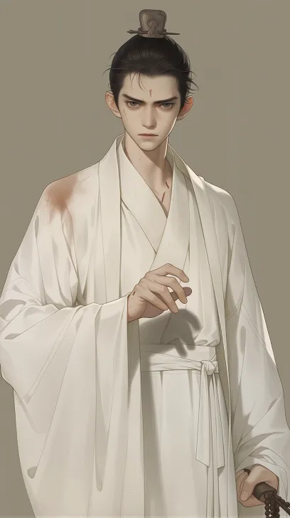 Midjourney Bot 更新时间:2026-03-18 00:01https://images.gogpt.vip/aigf/m_origin/20260317/2091174/kfnwws1in7ubnxkx.png 3DQ版一些,要全身样貌,前少年将军现古寺僧人,面容俊朗清瘦,剑眉深眸,墨发以旧木簪高束,肤色清寂苍白。身着素白洗旧僧衣,宽袖简洁,无多余配饰,左手捻旧佛珠,左肩暗藏箭伤疤痕。身姿孤直端正,眼神淡漠藏痛楚,隐忍时指节泛白、喉结滚动。细节丰富,具电影级质感,清冷氛围感拉满,不要遮住主体人物。 --ar 9:16 --stylize 100 --iw 0.25 --niji 7