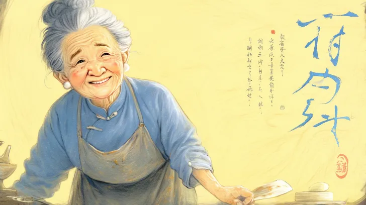 Midjourney Bot 更新时间:2026-03-18 00:02(中国老奶奶,瘦小身材,微微驼背,银白发髻,满脸皱纹,慈祥,眯眼,灰蓝布衫,沾泥围裙,粗糙的手,树皮般的手) --ar 16:9 --stylize 100 --niji 6 --sref https://images.gogpt.vip/aigf/m_origin/20260313/418294/t6ucj63ue9lp3r54.jpg --cref https://images.gogpt.vip/aigf/m_origin/20260317/418294/g5xd48lf5t0w1hs3.png --cw 35 --sw 484