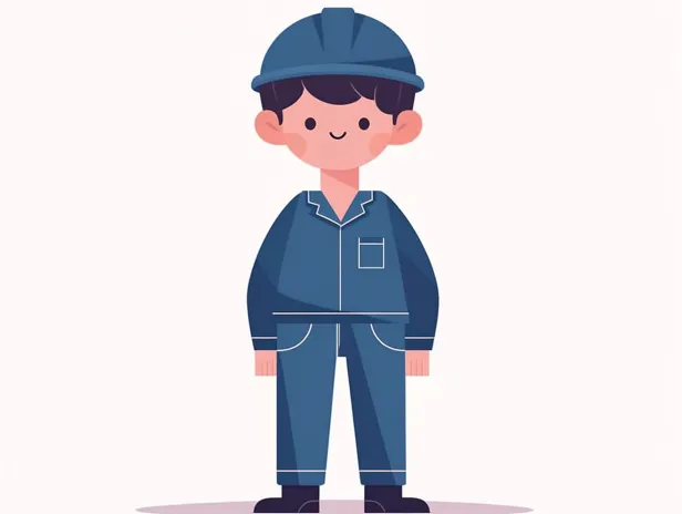 Midjourney Bot 更新时间:2026-03-18 00:05年轻或中年男性,面容简洁友好 发型:简单的几何形状头发,如黑色半圆形或短直线条表示的短发 面部:极简的五官——两个黑色圆点表示眼睛,一条弧线表示微笑,无需鼻子或耳朵细节 姿态:站立姿势,身体微微朝前,双手自然下垂姿态轻松自然 服装细节: 上衣:蓝色劳保服,翻领设计,可用白色细线勾勒领口和门襟;胸前可有简单的口袋(用白色线条表示) 裤子:同色系蓝色工装裤,直筒或略微宽松,裤缝可用白色线条简单勾勒 鞋子:黑色或深蓝色劳保鞋,简单几何形状,无细节 配饰):头上可戴蓝色的安全帽, --ar 4:3 --stylize 100 --niji 7 --sref https://images.gogpt.vip/aigf/m_origin/20260317/2084282/fh58m10wb03z85b9.png https://images.gogpt.vip/aigf/m_origin/20260312/2084282/7tao87qhks2chot5.jpg --sw 101