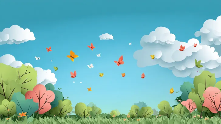 Midjourney Bot 更新时间:2026-03-18 00:05花园背景,天上有飞舞的小鸟,蓝色天空,蚂蚁森林风格,图形感,简约,草地占一半构图面积 --ar 16:9 --v 7 --seed 1567159629 --stylize 100