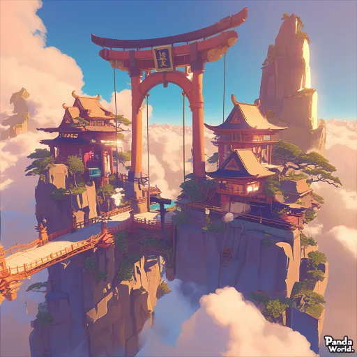 Midjourney Bot 更新时间:2026-03-18 00:09在夕阳环境的高山顶上一条小路笔直通向一个有设计造型感半圆形的暖色调的巨大大门,大门四周围是云遮蔽大门里面景象是俯视下方竹林中一个夕阳下许多建筑的奇幻熊猫世界顶背光轮廓剪影,大门有体积光,大门上牌子写着熊猫世界,,环境中飘散着许多竹叶,卡通游戏风格化,造型简约概括有趣夸张,皮克斯3d动画渲 染风格,16:9 一个奇幻熊猫主题3d游戏画面 --ar 1:1 --stylize 100 --niji 6