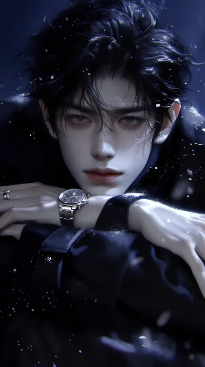 Midjourney Bot 更新时间:2026-03-17 00:12非真人,高级CG插画,伪厚涂,FHD画质,细腻CG,BJD质感,哑光细闪质感,空灵光效,2.5次元画风 近距离,正面面对镜头 高冷禁欲淡颜系年轻美男,五官立体精致,五官深邃,下颚线锋利,绝美眼睛,单眼皮,无睫毛,深灰色瞳孔 鼻梁高挺且直,鼻尖小巧圆润 细腻白皙脸庞,白皙冷艳皮肤,面部亮白色调,建模鹅蛋脸 微醺感,眼神迷离,魅惑感 淡色丰满嘟嘟唇,上下唇宽度大,嘴唇饱满水润有光泽 黑色蓬松凌乱短发 黑色大衣,双臂环抱于胸前,左手手腕搭在右肩,右手则轻轻搭在左手臂上 佩戴手表,戒指 聚焦于人物的面部和上半身 整体采用冷色调,以深蓝、银灰和黑色为主,营造出清冷、高级又略带忧郁的氛围。画面中散落着细碎的白色颗粒,像是雪粒或闪光粉,增强了梦幻和疏离感 --ar 9:16 --stylize 733 --niji 7