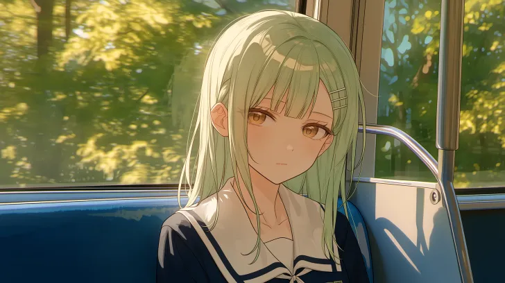 Midjourney Bot 更新时间:2026-03-17 00:25若叶睦,Wakaba Mutsumi,BanG Dream! It's MyGO!!!!!,1girl,solo,低头垂眸,清冷柔和的微表情,月之森女子学园深蓝色水手服,白色大翻领,白色水手领结,校徽细节,坐在行驶的日本电车座位上,电车蓝色座椅,金属车窗框,窗外茂密的绿色树林,暖金色午后柔和逆光,树叶斑驳柔化光影,圆形散景柔光光斑,空气感尘埃粒子,浅薄荷绿及腰长直发,齐刘海,侧边银色十字发夹,金色琥珀色柔和通透眼眸,冷白通透细腻肌肤,style by Rella,style by Loundraw,日系二次元动画原画质感,细腻柔化平涂,柔和色彩渐变,极淡的手绘柔化笔触,柔和的边缘勾线,无锐利硬线条,纸面柔化肌理质感,低饱和高通透色调,极致柔和的发丝刻画,丝滑自然的发丝分层,蓬松柔和的头发体积感,齐刘海发丝自然过渡不粘连,鬓角碎发柔化虚化,发梢边缘柔和不锐利,逆光下的发丝柔化通透光感,发丝边缘的柔和轮廓光,光影在头发上的柔化斑驳投影,头发明暗层次自然柔和过渡,发丝绒感空气感,8K超高清发丝柔化细节,发丝线条干净柔和不杂乱,极致细腻的眉眼刻画,纤细柔和的野生眉,眉丝自然柔化过渡,自然平缓眉峰,细长清冷杏眼,多层细腻虹膜渐变,柔光玻璃质感眼瞳,低饱和通透水光感,柔和漫反射瞳孔高光,自然细碎的柔和眼神光,纤细绒感成簇的上睫毛,柔和虚化的下睫毛,眼睑柔化阴影过渡,睫毛在皮肤的柔化细微投影,眼白通透干净,眼尾柔和下垂,面部光影贴合五官结构自然柔化,极致8K五官细腻细节,极致柔和漫逆光,侧逆光柔化轮廓光,丁达尔柔化光效,电影级柔和光影层次,空灵清冷治愈氛围感,8K超高清,极致细腻细节,最佳画质,大师级作品,无水印无多余元素 --ar 16:9 --stylize 100 --niji 7