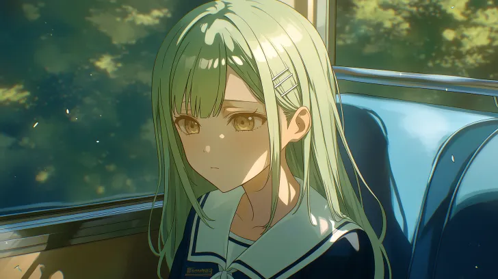 Midjourney Bot 更新时间:2026-03-17 00:25若叶睦,Wakaba Mutsumi,BanG Dream! It's MyGO!!!!!,1girl,solo,低头垂眸,清冷柔和的微表情,月之森女子学园深蓝色水手服,白色大翻领,白色水手领结,校徽细节,坐在行驶的日本电车座位上,电车蓝色座椅,金属车窗框,窗外茂密的绿色树林,暖金色午后柔和逆光,树叶斑驳柔化光影,圆形散景柔光光斑,空气感尘埃粒子,浅薄荷绿及腰长直发,齐刘海,侧边银色十字发夹,金色琥珀色柔和通透眼眸,冷白通透细腻肌肤,style by Rella,style by Loundraw,日系二次元动画原画质感,细腻柔化平涂,柔和色彩渐变,极淡的手绘柔化笔触,柔和的边缘勾线,无锐利硬线条,纸面柔化肌理质感,低饱和高通透色调,极致柔和的发丝刻画,丝滑自然的发丝分层,蓬松柔和的头发体积感,齐刘海发丝自然过渡不粘连,鬓角碎发柔化虚化,发梢边缘柔和不锐利,逆光下的发丝柔化通透光感,发丝边缘的柔和轮廓光,光影在头发上的柔化斑驳投影,头发明暗层次自然柔和过渡,发丝绒感空气感,8K超高清发丝柔化细节,发丝线条干净柔和不杂乱,极致细腻的眉眼刻画,纤细柔和的野生眉,眉丝自然柔化过渡,自然平缓眉峰,细长清冷杏眼,多层细腻虹膜渐变,柔光玻璃质感眼瞳,低饱和通透水光感,柔和漫反射瞳孔高光,自然细碎的柔和眼神光,纤细绒感成簇的上睫毛,柔和虚化的下睫毛,眼睑柔化阴影过渡,睫毛在皮肤的柔化细微投影,眼白通透干净,眼尾柔和下垂,面部光影贴合五官结构自然柔化,极致8K五官细腻细节,极致柔和漫逆光,侧逆光柔化轮廓光,丁达尔柔化光效,电影级柔和光影层次,空灵清冷治愈氛围感,8K超高清,极致细腻细节,最佳画质,大师级作品,无水印无多余元素 --ar 16:9 --niji 7