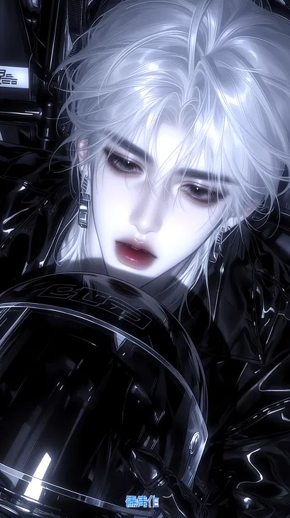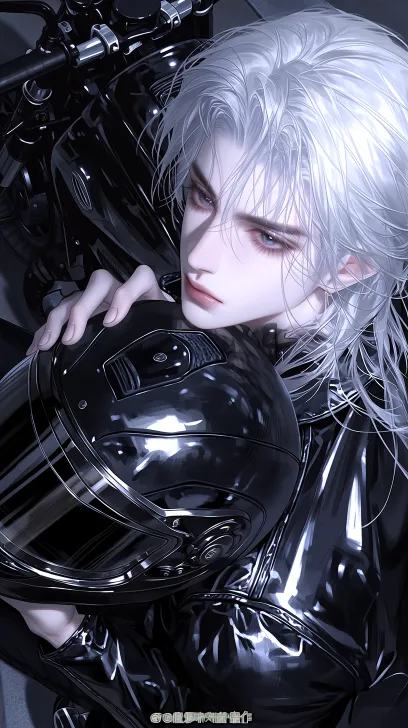 Midjourney Bot 更新时间:2026-03-17 00:042.5D厚涂+插画风格 一个帅气的少年 银白色头发(发丝根根分明+刘海遮住额头呈现“M”字造型+狼尾微卷) 少年长相俊美 五官精致 身穿黑色系机车服 少年单手抱着机车头盔(黑色系+反光) 少年看向镜头 少年模特九头身 身材比例极佳 黑色桃花眼 睫毛根根分明 薄唇 树脂娃娃肌肤(白皙皮肤+皮肤细腻质感) 鱼眼镜头融合俯视视角 少年站在夜色的街道上 靠着机车(黑色摩托车) 看向镜头 眼睛看着镜头 少年在画面中间位置 远景全身照(大腿及以上部位) 少年面无笑意 背景氛围感十足(街头感) 夜晚 极致的细节 鲜艳的色彩 高饱和 冷色调 丰富的元素 杰作 --ar 9:16 --stylize 79 --niji 7 --profile 6f3d8rv 2z87c4e