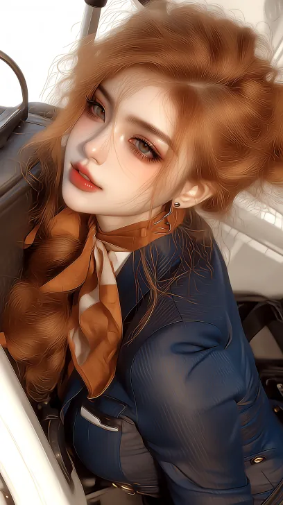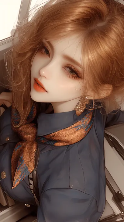 Midjourney Bot 更新时间:2026-03-15 00:20https://images.gogpt.vip/aigf/origin/20260314/1773480880403810_1.png 一位25岁的女孩,年轻漂亮,妆容风格为2.5D半厚涂,面部拥有BJD娃娃的质感。中景镜头,她直视相机,头发扎成丸子头,发色为橘棕色,笑容甜美,身穿蓝色西装外套空姐制服。脖子上系明亮色调的丝巾着丝巾,手推行李箱。背景是明亮的机舱内部。人物占据画面中心,相机采用正面角度拍摄。这是一幅杰作,最高质量,8K分辨率,人物有黑色勾线。生成四个姿势不一致的。人物主体清晰,脸部细致刻画。衣服上不要有多余杂色。人物面朝镜头拎着行李箱 --ar 9:16 --c 6 --stylize 800 --iw 1.75 --niji 7 --sref https://images.gogpt.vip/aigf/m_origin/20260315/2080795/0p9xodapsjmt6u53.jpg --sw 1000 --profile wzcxdj1 --no Chest,thighs,bare