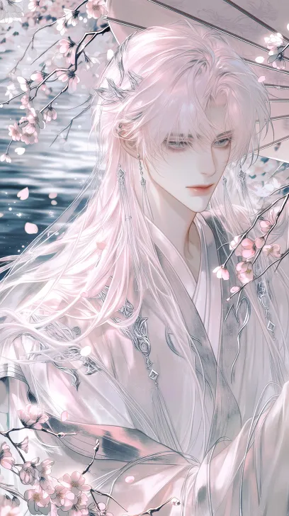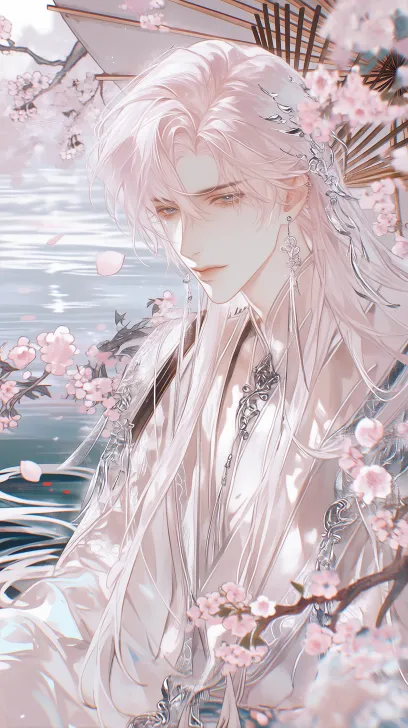 Midjourney Bot 更新时间:2026-03-15 00:18(古风汉服,高清画质) - 人物特征:白发、古风美男、清冷气质 - 服饰风格:古风汉服、浅色系(白+粉)、飘逸感 - 场景元素:樱花、花瓣、水面、伞(油纸伞)、花枝 - 视觉风格:唯美、清新、梦幻、二次元/插画风格 - 氛围关键词:春日、温柔、仙气核心主体: 古风美少年,白化病特征,淡粉白色长发,淡白色眉毛与睫毛,浅灰蓝色通透眼眸,皮肤白皙易碎,清冷温柔气质,病娇易碎感 服饰造型: 浅粉白渐变飘逸汉服,丝绸质感,暗纹刺绣,交领广袖,银质精致发饰与耳饰,侧边编发 场景氛围: 春日樱花林,水面倒影,飘落的粉色花瓣,花枝环绕,朦胧柔光,仙气治愈,东方意境 绘画风格: 唯美古风,厚涂写实向,细腻柔和线条,通透光影,低饱和马卡龙色调,精致发丝与面料质感,半身构图8K分辨率,伪厚涂,精细肖像,大片质感,通透皮肤,高对比度,低饱和度,超精细描绘,数码高清写实主义,唯美主义,空灵飘逸,干净,宣纸质感 --ar 9:16 --stylize 100 --niji 7 --no 发冠,不完美肢体,签名