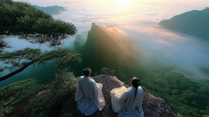 Midjourney Bot 更新时间:2026-03-15 00:20主体:两位仙者(一老一少,或双老)面对悬崖边缘相对而坐,正处于深度冥想状态。 细节:仙者身着的麻质长袍纹理清晰可见,甚至能看到布料上的细小纤维和微风吹起的褶皱。须发在晨光下呈现出半透明的发光质感(Rim Lighting)。 光影:强烈的丁达尔效应(Tyndall effect),金色的阳光穿透浓密的云雾,光束如剑般斜刺入画面,将人物轮廓勾勒出一层金边。 环境:脚下是如浪潮般翻滚的云海,近处是一株苍劲古松,松针上的露珠反射着微光。典型的中国仙侠影视大片质感,冷暖对比的色调(深绿的山林与淡金色的晨光。电影宽银幕构图,8K超高清分辨率,极致的细节刻画,充满东方禅意与超凡脱俗的氛围,。 --ar 16:9 --v 7 --style raw --sref https://images.gogpt.vip/aigf/m_origin/20260315/1914867/1b464vh61hhh4c1f.png --sw 350