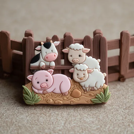 Midjourney Bot 更新时间:2026-03-16 00:01https://images.gogpt.vip/aigf/m_origin/20260316/278342/d2s8zlkgpwlzl4je.webp https://images.gogpt.vip/aigf/m_origin/20260315/278342/gvh2f0v2zd4jey0x.webp 生成一款长方形卡片,卡片的图案内容为一只粉色小猪躺在泥坑里,小牛在栅栏里,白色小羊靠在草垛旁边,简约卡通造型,浮雕造型 --ar 1:1 --v 7 --style raw --stylize 100 --iw 0.25