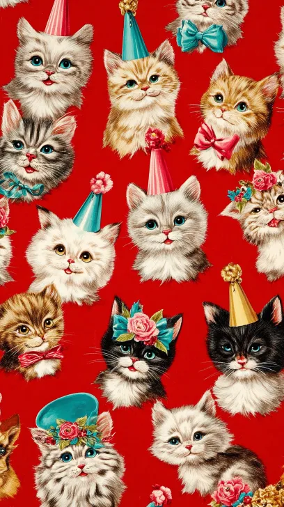 Midjourney Bot 更新时间:2026-03-16 00:04各种颜色和大小的猫咪图案,有些猫咪毛上长着花,插图的风格让人想起卡通插画。背景是鲜艳的实的色调,营造出一种氛围,感觉它将是一副很治愈的有插画,这种设计可以包括野花、鲜艳的颜色和每只猫脸上有趣的表情和每只猫带着不同的装饰,比如帽子,围巾,蝴蝶结,发卡等元素,为它们坐的任何空间增添魅力。重点应该放在面部表情和装饰上。 --ar 9:16 --v 7 --c 33 --stylize 56