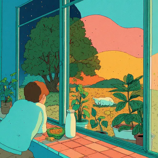 Midjourney Bot 更新时间:2026-03-12 00:17一幅50cm x 50cm的正方形叙事绘画,一个家庭的飘窗场景,运用透明叠加的手法表现不同时间的同时共存——大理石窗台上同时出现冬天的牛奶瓶(表面凝着水珠)、夏天的半块西瓜、妈妈的喷壶、几盆不同季节的植物(同时有嫩芽、茂叶和黄叶),窗玻璃上叠印着妈妈浇水的半透明侧影和孩子趴在窗台上的半透明背影,窗外的树上同时用不同颜色画出春天的嫩绿、夏天的深绿、秋天的金黄和冬天的枯枝,天空呈现从晨曦淡蓝到黄昏粉橙的渐变。画面采用斜侧视角,大理石材质的冰冷感用细致的排线表现,暖气管道的热空气用向上的橙色波浪线表示,与飘窗的蓝色冷气形成对比。整体色调柔和,细节丰富,充满温暖的家庭记忆感和时光的诗意。手绘风格,水彩与彩色铅笔质感,柔和的光影,叙事性构图,情感细腻。 --ar 1:1 --v 7 --style raw --stylize 100 --sref https://images.gogpt.vip/aigf/m_origin/20260312/2082871/uscuclpqay67jn94.jpg