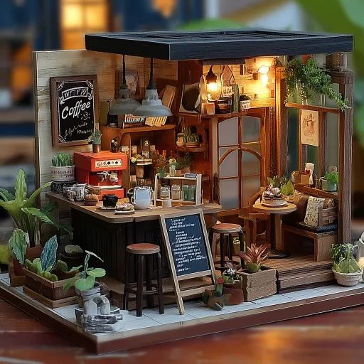 Midjourney Bot 更新时间:2026-03-12 00:19美式乡村复古咖啡微缩小屋,复古治愈风格,暖黄灯光,柔和光影,暖色调,木质纹理,做旧质感;轴测视图,C4D 渲染,超精细,高细节,8K,干净背景。整体分为吧台操作区与客席休息区:吧台配有复古咖啡机、磨豆机、咖啡杯、蛋糕柜、复古菜单牌;客席摆放美式复古家具、桌椅、沙发、绿植、小吊灯、玻璃橱窗与温馨角落装饰摆件,氛围温馨治愈、明亮舒适,适合休闲小坐。 --ar 1:1 --v 7 --sref https://images.gogpt.vip/aigf/m_origin/20260312/704938/434clsjc6woy658y.png
