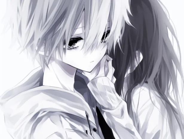 Midjourney Bot 更新时间:2026-03-12 00:19一个动漫男头搂着一个长发卫衣女孩,女孩手摸自己脸,忧郁风,白色背景,线条,黑色眼睛,少年,英俊帅气,帅哥,纯白色头发,白色背景,白色外套,连帽衣,白色头发,长袖,看着镜头,飘逸的头发,侧面,转头,短发,上半身, --ar 4:3 --style raw --stylize 488 --niji 6 --profile s4n114l --no 双色头发 头发颜色一半一半的 白发