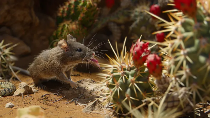 Midjourney Bot 更新时间:2026-03-12 00:21沙漠地面,白喉林鼠用嘴小心翼翼叼着泰迪熊仙人掌的刺,拖向由刺搭建的巢穴入口,背景有响尾蛇潜伏,自然纪录片风格,电影感,8k分辨率 --ar 16:9 --v 6.0 --stylize 100