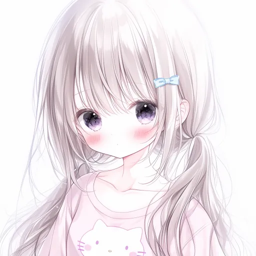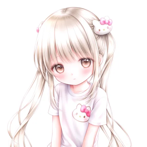 Midjourney Bot 更新时间:2026-03-13 00:00动漫二次元可爱少女,单人,板绘,高质量超清,画质修复高质量,白色背景,白色头发,长发,双马尾,飘逸的头发,白色衬衫,短袖,粉色HelloKitty图案,白色小兔子可爱发夹,看着镜头,可爱的,萌萌的,皮肤白,身材纤细 --ar 1:1 --stylize 288 --niji 6 --profile v5bs8qh