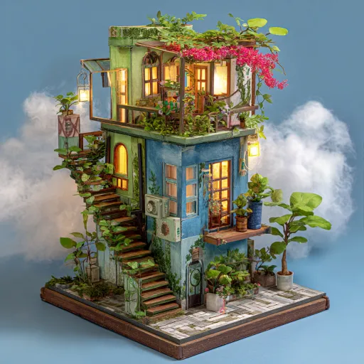 Midjourney Bot 更新时间:2026-03-13 00:01微缩精致的空中梦幻花园小屋 --ar 1:1 --v 7 --stylize 100