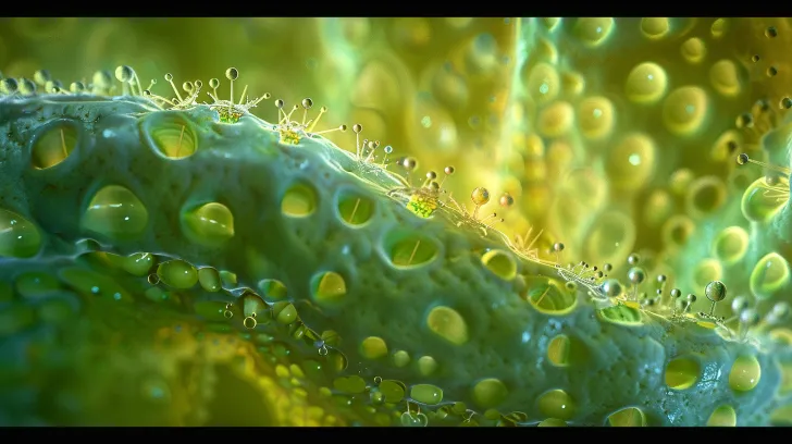 Midjourney Bot 更新时间:2026-03-12 00:02仙人掌茎的横截面特写,显示内部储水的海绵状组织,绿色外皮表示光合作用,阳光照亮内部,水珠渗出,科学插图风格,细节丰富,8k分辨率 --ar 16:9 --v 6.0 --stylize 100