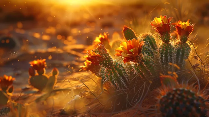 Midjourney Bot 更新时间:2026-03-12 00:12沙漠中一株盛开着鲜艳花朵的仙人掌,周围风沙飞舞,但仙人掌挺立不倒,花朵娇艳,夕阳金色光线,生命力的象征,电影感,8k分辨率 --ar 16:9 --v 6.0 --stylize 100