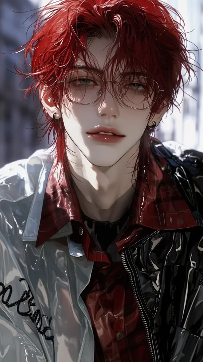 Midjourney Bot 更新时间:2026-03-12 00:14高级CG bjd 成年男性 高级厚涂 头发蓬松发丝凌乱 高清画质 光从侧面打过来 刘海过眉 冷白皮 耳环 眼尾向下 高鼻梁 薄唇 漫画感 涂画风 细腻晕染 朦胧 面部柔焦 高分辨率 笔触 插画 不羁 叛逆 嘴唇水润 俯视 立体打光 人物放大脸部特写 红色的头发 背景街道 内搭:红黑格纹衬衫,经典复古的格纹元素,领口微敞,为整体造型增添层次感与复古氛围。 外套:拼接款棒球服,正面是浅灰色哑光面料,袖子与肩部采用黑色亮面皮质,衣身还有黑色手写风刺绣字母装饰,兼具街头感与精致感。 风格:整体是美式街头+亚文化风格,红黑撞色与皮质拼接凸显个性,配饰细节强化了叛逆、随性的潮流气质。 冷色调 面部特写 --ar 9:16 --stylize 800 --niji 7