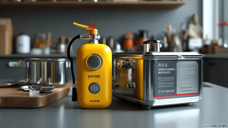 Midjourney Bot 更新时间:2026-03-11 00:00设计一款磁吸式家庭厨房灭火器,体积小巧,形状为三棱柱,专门应对小型油锅火。主体采用磁吸式外壳,可吸附于厨房金属墙面。喷头位于三棱柱的顶部棱角处,朝前倾斜设计,方便对准油锅。按键设置在前端面上方位置,加大圆形按钮,红色配色,一键按压即可喷射。瓶身印有超大字体“油锅火专用”及“拔销按压”操作指引。三棱柱棱边圆润处理,握持舒适。配色以红色为主,侧面有灰色装饰条,磁吸面为黑色磨砂材质。背景为现代厨房,墙面为金属质感,灭火器吸附于墙面,光线柔和自然,3D渲染,C4D风格,Octane渲染,超写实,工业设计感,8K分辨率 --ar 16:9 --v 7 --stylize 150 --oref https://images.gogpt.vip/aigf/m_origin/20260310/2080729/jx77ud3e54j7sdg8.png --ow 400