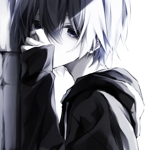 Midjourney Bot 更新时间:2026-03-11 00:01一个动漫男头,袖口捂嘴,靠墙,忧郁风,白色背景,线条,黑色眼睛,少年,英俊帅气,帅哥,蓝色眼睛、蓝色头发,白色背景,黑色外套,连帽衣,白色头发,长袖,看着镜头,飘逸的头发,侧面,转头,短发,上半身, --ar 1:1 --style raw --stylize 488 --niji 6 --profile s4n114l --no 双色头发 头发颜色一半一半的 白发