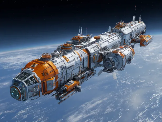 Midjourney Bot 更新时间:2026-03-11 00:08概念化超前 科幻风格 宇宙模块化飞船 ,用途是可以回 --ar 4:3 --v 7 --stylize 100