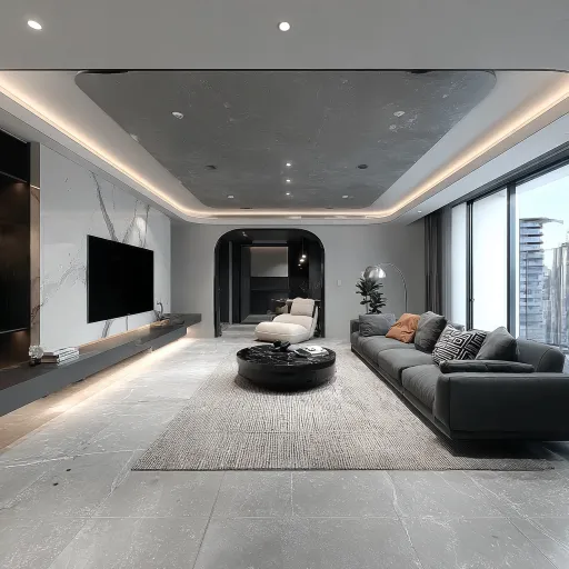 Midjourney Bot 更新时间:2026-03-11 00:06https://images.gogpt.vip/aigf/m_origin/20260310/2079852/svpvspyxlvh1sekk.png 现代简约客厅室内设计,悬浮吊顶+线性灯槽+磁吸轨道灯,大规格浅灰大理石瓷砖通铺,鱼肚白岩板电视背景墙,悬浮式白色电视柜,深灰色直排真皮沙发,几何图案抱枕,圆形大理石茶几,几何条纹编织地毯,黑白抽象艺术画,大型龟背竹绿植,黑色弧形钓鱼落地灯,奶白色懒人沙发,整体色调为黑白灰+暖白灯光,空间通透,质感高级,写实渲染,3D效果图,建筑可视化 --ar 1:1 --v 7 --stylize 100 --iw 0.25 --sref https://images.gogpt.vip/aigf/m_origin/20260311/2079852/w32vr3z189omc9ns.png --sw 200 --sv 2