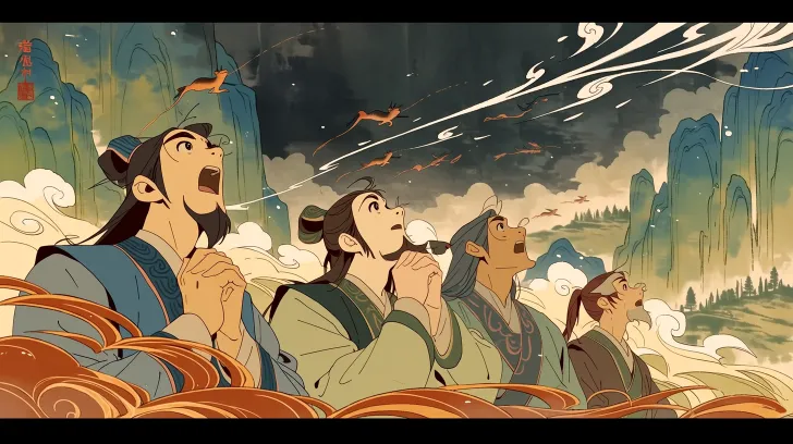 Midjourney Bot 更新时间:2026-03-10 00:14https://images.gogpt.vip/aigf/m_origin/20260308/2072878/v8ai3y0blk87yix3.jpg https://images.gogpt.vip/aigf/m_origin/20260310/2072878/kaf4wd0b01fsu8mp.jpg 新国风神话绘本,国潮扁平插画,中国传统工笔线描,矿物色平涂渐变, 宋代青绿山水风格,书法笔触线条,线勾边,装饰性云纹与水纹,远处山林中出现野兽的身影,人们神情紧张。害怕,夜色渐暗。民族元素,神话绘本风格,瑶族风格,暖色调。神话元素,颜色用色块概括,构图:留白美学。 --ar 16:9 --stylize 800 --iw 0.3 --niji 7 --sref https://images.gogpt.vip/aigf/m_origin/20260304/2072878/0quhr14mejmn02jx.jpg https://images.gogpt.vip/aigf/m_origin/20260304/2072878/c7ftdw9itaxw9db4.jpg --no 河流,多个人,人群