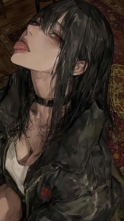 Midjourney Bot 更新时间:2026-03-10 00:14黑发,红眸,中短发到肩膀,女性,御姐,警服,飒爽,面无表情,脖子上带着choker,坐在地毯上抬头看着,舌头伸出来,2.5D半厚涂写实风 --ar 9:16 --style raw --stylize 872 --niji 6 --profile xdxza2j t4kg9wx --no 烟,胡子,耳坠,红唇,尖下巴,纹身,十字架,手套,耳饰
