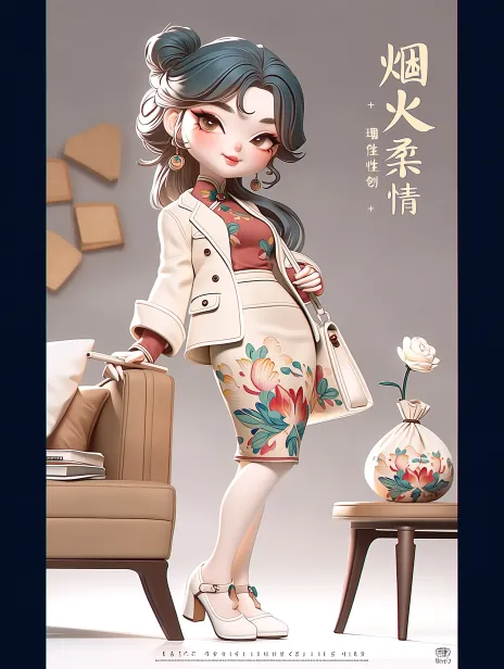 Midjourney Bot 更新时间:2026-03-10 00:15https://images.gogpt.vip/aigf/m_origin/20260309/1799654/scjkry3w6li0mnlb.png https://images.gogpt.vip/aigf/m_origin/20260309/1799654/pc6qz0guiaxr9sfl.png 妩媚豪爽卡通风格,全身站立姿势头身比1:1.5:国潮写实风格,全身立绘(1:1.5),35 岁川渝女性,简约连衣裙(裙摆暗藏蜀绣缠枝莲暗纹),外搭亚麻西装,脚踩低跟鞋,手提融合彝绣元素的通勤包,背景为温馨客厅与现代办公区拼接(桌上摆蜀绣香囊与工作文件),一手轻扶沙发,一手持钢笔,笑容温柔从容,体现 “烟火柔情 + 理性创见” --ar 3:4 --stylize 100 --iw 1.25 --niji 7