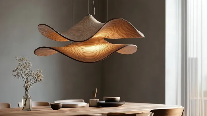 Midjourney Bot 更新时间:2026-03-10 00:17https://images.gogpt.vip/aigf/m_origin/20260310/145371/0eosn4y3ovummgj2.jpg 一盏优雅的悬挂灯,采用流线型设计,仿佛由木材制成,呈现出自然的纹理和温暖的色调。灯具的形状如同波浪般柔和,营造出一种轻盈与动感的视觉效果。背景是一个简约的用餐空间,木质餐桌上摆放着简单的餐具和一瓶干花,整体氛围温馨而舒适,充满自然光线,展现出现代家居的雅致与宁静感。 --ar 16:9 --v 7 --stylize 100 --sref https://images.gogpt.vip/aigf/m_origin/20260310/145371/1s67kdzh26gmkedm.jpg --oref https://images.gogpt.vip/aigf/m_origin/20260310/145371/3ntzzohlucryosal.jpg --ow 74 --sw 150