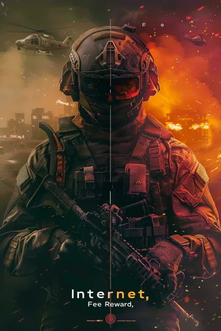 Midjourney Bot 更新时间:2026-03-10 00:19一个动态分割视图的网吧海报设计。左侧是来自三角洲行动的写实战术干员(如凯或路娜),穿着战斗装备,进行战术推进,暗绿色和土黄色调,烟雾缭绕的战场背景,有直升机::1.5。右侧是来自无畏契约的充满活力的风格化英雄(如霓虹或捷风),摆出带有电击特效的冲刺动作姿势,赛博朋克城市背景,带有紫色和粉色的霓虹灯::1.2。中间是一个发光的巨大金币和“网费奖励”文字,中央有大片空白区域用于放置文字。混合风格融合了照片写实主义和动漫风。对称构图,广角镜头,戏剧性的摄影棚灯光,体积光,高对比度,明亮醒目,商业广告海报,8k分辨率,虚幻引擎5渲染 --ar 2:3 --v 6.0 --stylize 250