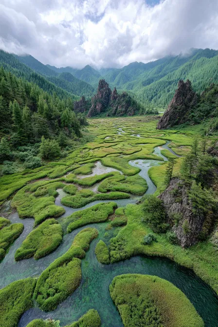 Midjourney Bot 更新时间:2026-03-10 00:19山岩林立,沼泽,河流,松树,干涸河谷,天空,云。细节极其复杂丰富。 --ar 2:3 --v 7 --stylize 100 --sref https://images.gogpt.vip/aigf/m_origin/20260309/1751635/r0rhlulhn0vsdcah.jpg https://images.gogpt.vip/aigf/m_origin/20260216/1751635/qv7fi9vcyajstppz.jpg --sw 60 --no gloves,glass,downlights,modern