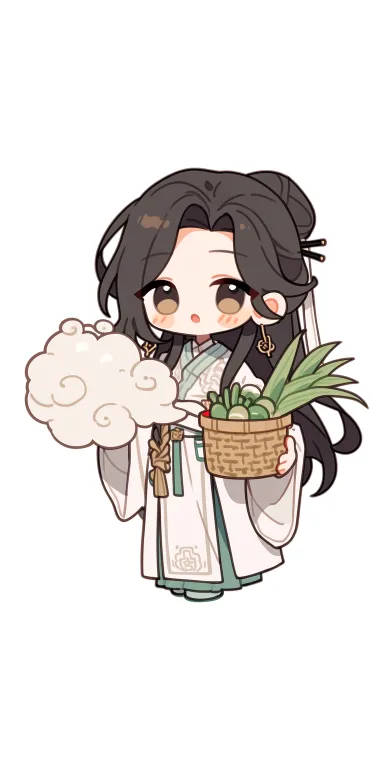 Midjourney Bot 更新时间:2026-03-09 00:03吉卜力卡通风格,采药少女,圆脸天然腮红,月牙眼,乌黑长发低马尾木簪固定,月白短袄淡绿比甲,腰挂小竹篓装草药,肩上搭白汗巾。身旁飘一团白色蓬松小云朵,有两只耳朵,会蹭人。纯色背景 ,8K,三维渲染。 --ar 1:2 --stylize 100 --niji 7
