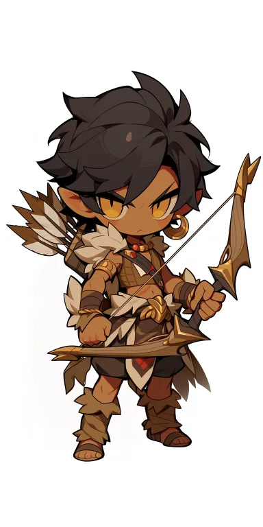 Midjourney Bot 更新时间:2026-03-09 00:04吉卜力卡通风格,猎户少年,小麦色皮肤,单眼皮锐利眼神,黑色短发扎小揪,深褐色短褐,鹿皮背心,腰间箭囊插几根彩羽,背旧木弓,左耳铜环,有生命感。纯色背景,8K,三维渲染。 --ar 1:2 --stylize 100 --niji 7