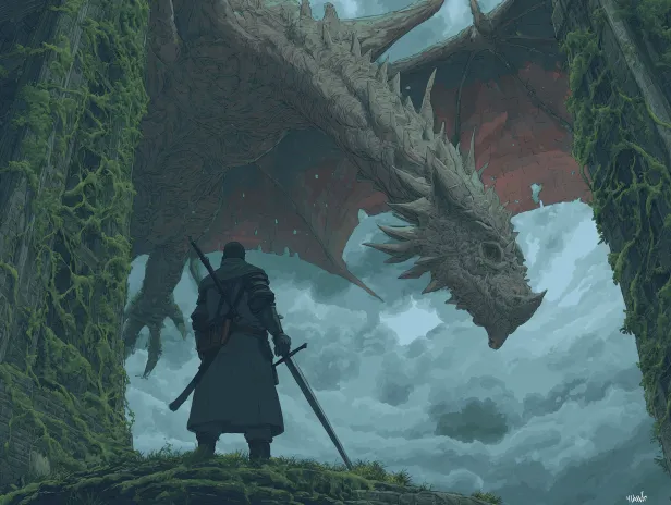 Midjourney Bot 更新时间:2026-03-09 00:10https://images.gogpt.vip/aigf/origin/20260308/1772983210729971_1.png https://images.gogpt.vip/aigf/m_origin/20260309/2078039/jriky769pce6fj4k.png https://images.gogpt.vip/aigf/origin/20260308/1772984090881742_1.png https://images.gogpt.vip/aigf/origin/20260308/1772984090881742_2.png https://images.gogpt.vip/aigf/m_origin/20260309/2078039/9sz33e94yztia8wi.png https://images.gogpt.vip/aigf/origin/20260308/1772984090881742_4.png https://images.gogpt.vip/aigf/m_origin/20260309/2078039/ybr5qkw2im2kxks9.png https://images.gogpt.vip/aigf/origin/20260308/1772984090881742_3.png https://images.gogpt.vip/aigf/origin/20260308/1772983210729971_2.png 一位身穿深色传统骑士铠甲的战士,背对观者,站立于大地上,身旁插着一把大刀,姿态沉稳,仿佛在凝视前方。一条体型庞大的巨龙,龙身覆盖粗糙鳞片,龙首狰狞,龙翼展开,盘旋于教堂之上,部分身体隐没在云雾中,营造出神秘与压迫感。一座宏伟的巴洛克风格教堂,教堂内部被绿色藤蔓缠绕,从柱子、墙壁到天花板,藤蔓自然生长,部分覆盖了壁画与雕塑,营造出的荒废美感营造出“废墟中的神圣感”。静谧、神圣、荒废、重生、自然与文明的交融、光影戏剧性、史诗感。天空阴暗,整体色调偏冷,神话生物的不可接触。日式奇幻插画风格,线条细腻,画面具有电影感与叙事性。 --ar 4:3 --v 7 --stylize 100 --iw 0.25 --sref https://images.gogpt.vip/aigf/m_origin/20260308/2078039/8zcyfyc5qb06jol1.png https://images.gogpt.vip/aigf/m_origin/20260308/2078039/k31j37mnv07ep3pm.png https://images.gogpt.vip/aigf/m_origin/20260308/2078039/f52qv8pvegoccobs.webp --sw 39