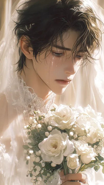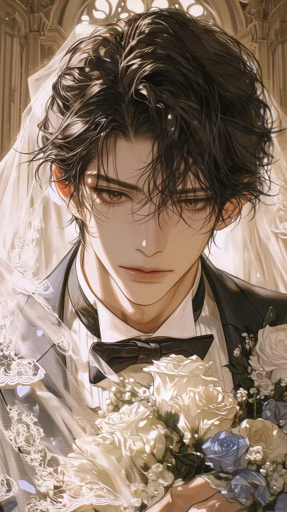 Midjourney Bot 更新时间:2026-03-09 00:08仰视角度,柔和的光影,面部特写,脸部占据整个画面,精致细节,优雅配色,清透感,朦胧感,韩式半厚涂风格,半写实风格,长脸,立体五官,一25岁的帅哥。外貌:黑色中短碎发,发尾带着凌乱。服装:露肩婚纱。动作:他表情不安。构图:教堂,手拿捧花。侧脸。细节丰富 --ar 9:16 --stylize 749 --niji 7